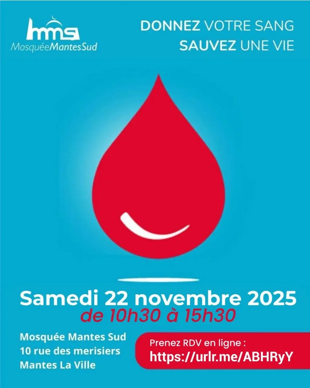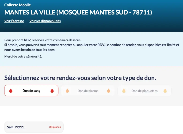 La mosquée de Mantes-Sud, dans les Yvelines (78), organise samedi 22 novembre une collecte de sang en partenariat avec l’Etablissement français du sang (EFS).
